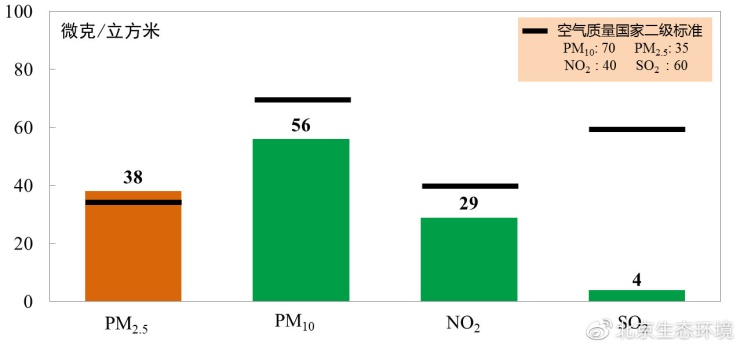 PM2.5年均濃度首次實(shí)現(xiàn)“30+”,其余三項(xiàng)污染物保持達(dá)標(biāo)。2020年,北京市PM2.5、PM10、NO2和SO2年平均濃度分別為38微克/立方米、56微克/立方米、29微克/立方米和4微克/立方米。其中,PM2.5濃度首次實(shí)現(xiàn)“30+”,與國家標(biāo)準(zhǔn)(35微克/立方米)的差距進(jìn)一步拉近;PM10、NO2自2019年開始連續(xù)兩年達(dá)到國家標(biāo)準(zhǔn)(70微克/立方米、40微克/立方米);SO2穩(wěn)定達(dá)到國家標(biāo)準(zhǔn)(60微克/立方米)。