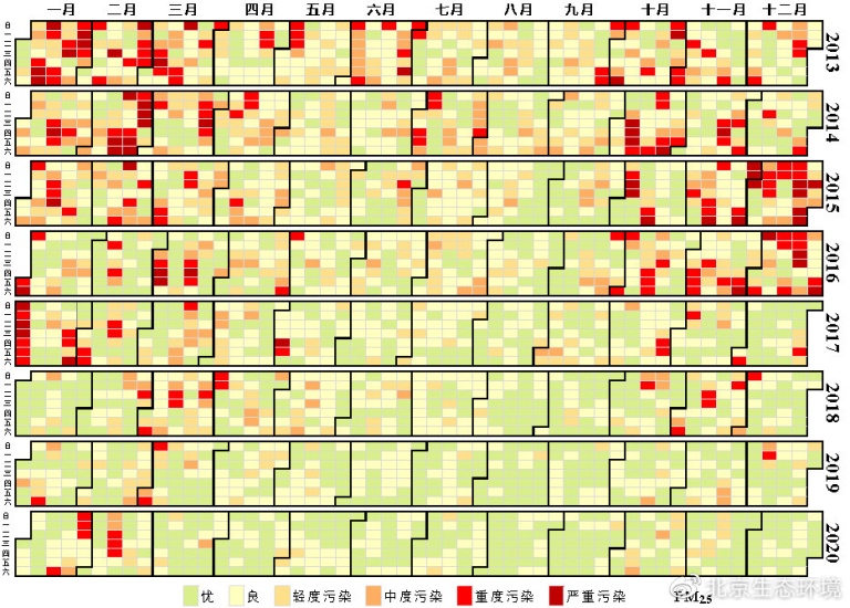 (圖9 2013-2020年PM2.5級別日歷圖)